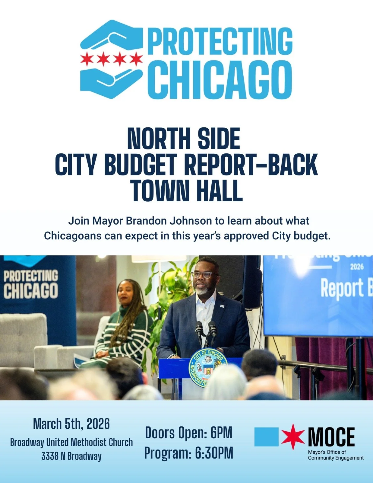 Join our neighbors and Mayor Brandon Johnson for a North Side City Budget Report-Back meeting on March 5th at 6:00 PM at the Broadway United Methodist Church, 3338 N Broadway Ave., to learn about progressive coalition’s efforts to pass a progressive budget and what we can expect in this year’s approved budget.