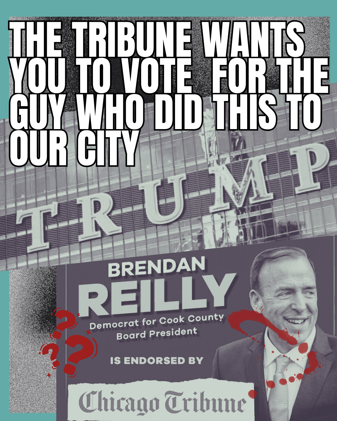 Brendan Reilly, who has secured the Tribune endorsement (big surprise!) is a DINO, who is responsible for the approval of the abomination on the river walk that ruined our skyline for the time being. We strongly recommend that Reilly takes his clown act somewhere else, because today is not the day, and we are not the ones. Bye, Reilly.
