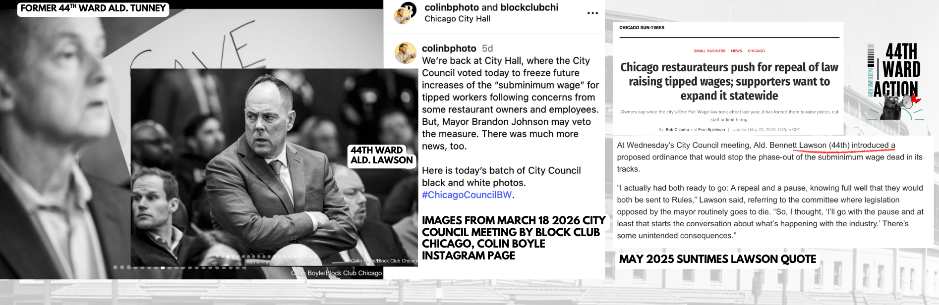 In other news, our Alderman Bennett Lawson once again voted with the corporate caucus to freeze scheduled wage increase for the tipped workers in Chicago. Former Ald. Tunney of Ann Sather Restaurants & Catering, overlooked the rotten fruits of his labor as the former chairman (2000) and a Lifetime Achievement Honoree(2023) of the Illinois Restaurant Association (the other IRA). This is old news of course, although every time we google Tunney, new hilarious articles pop-up. Just as our alderman Lawson boasted in his weekly email last Friday about signing onto a letter by Fair Vote Illinois supporting ranked choice voting, and his support of "The Reverend Jesse Jackson, Sr. Young Voter Empowerment Law" in the Illinois state legislature, which received unanimous council support, he completely omitted the subject of his vote and his part in the One Fair Wage saga. It was 39th Ward Ald. Samantha Nugent who introduced the ordinance this time, even though it was very much Lawson’s project in May of last year. We don’t want to take all the credit for making Ald. Lawson try to hide his hand, that we can only imagine, was (allegedly) guided by the firm grip of the “other IRA’. Girl I Guess covered this particularly telling part of his recent aldermanic record. There seems to be no consideration of the impact of freezing wages on the residents of our ward, particularly LGBTQ community members who work in service and hospitality.