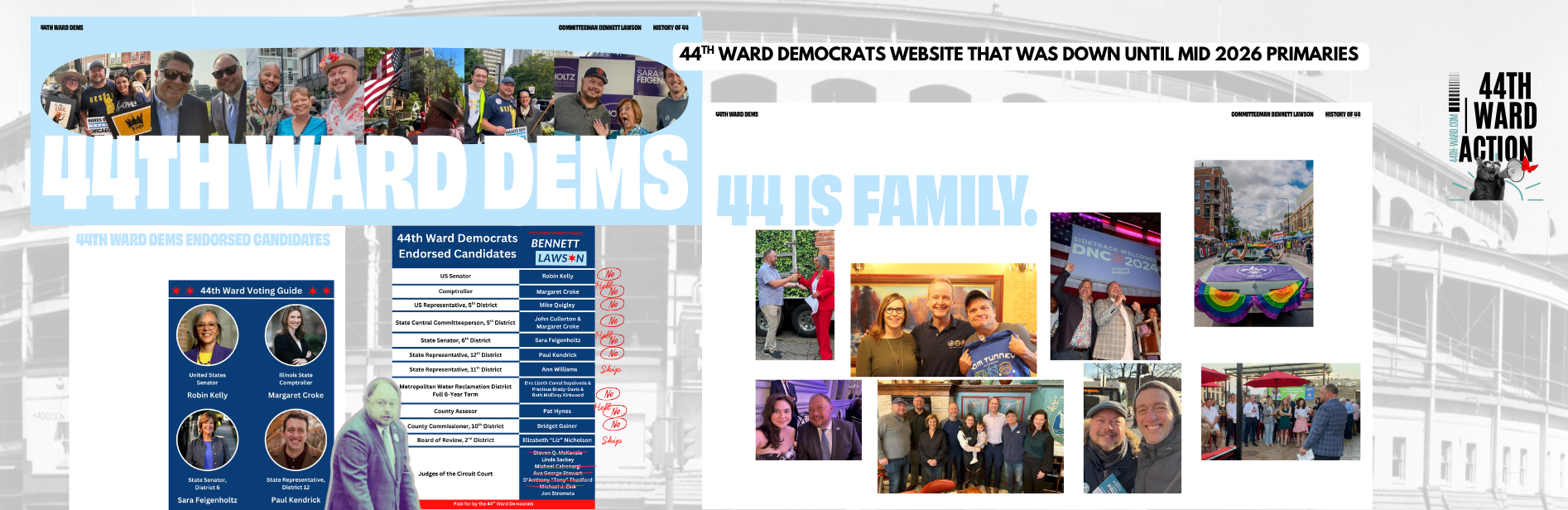 Our efforts to increase civic engagement are starting to bear fruit, albeit a stale one, as our 44th Ward Committeeman crept into action, and even resurrected the old website that was down as late as a week before the primaries. As of yesterday, the placeholder URL of 44thwarddems.com is now redirecting to the 44thwarddemocrats.org, which was dead as a doorknob just a week ago.